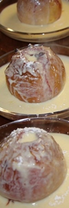 90 Bratäpfel hatte Gertrud nach neuem Rezept für den Abend vorbereitet. Eine Füllung mit Preiselbeeren und dann einen guten Schuß warmer Vanillesoße über den Apfel - ein Genuß.